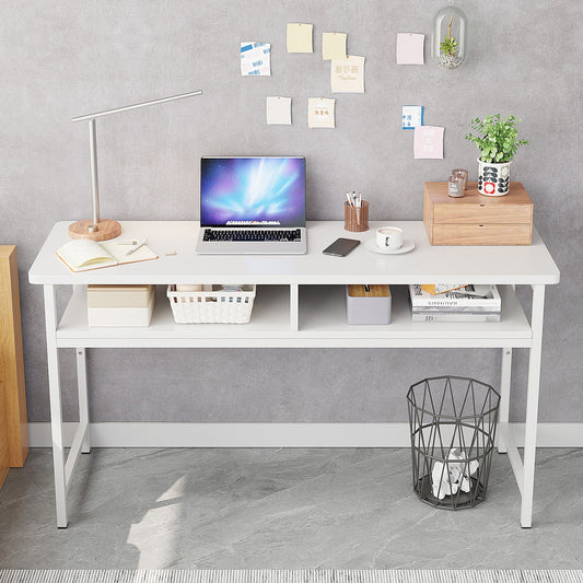 Exceeder Large Workstation Wood & Steel Computer Desk with Storage Shelves (White Oak)