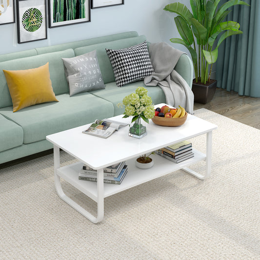 Elegance Wood & Steel Coffee Table with Shelf (White)
