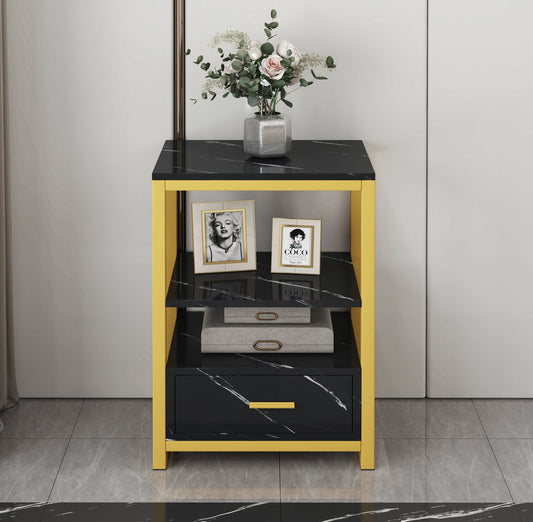 Synergy Luxury Marble Look Side Table Nightstand (Black)