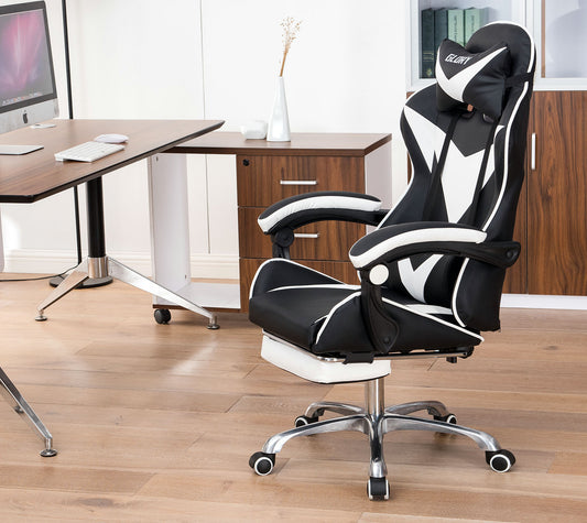 Glory Advanced Deluxe Executive High Back Gaming Reclining Office Chair with Footrest (Red & Black)