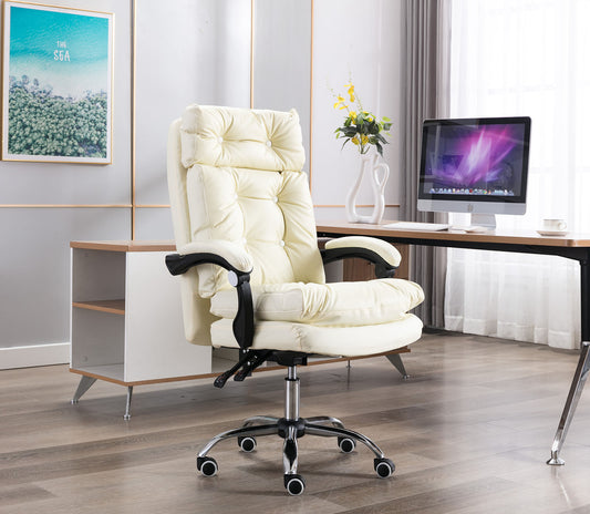 Apex Deluxe Executive Reclining Office Chair with Foot Rest (White/Cream)