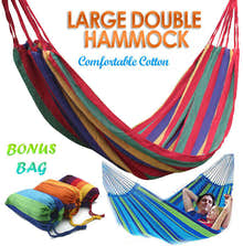 DOUBLE Large 2-Person Cotton Hammock with Bag (Red Stripes)
