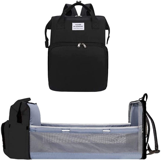 2-in-1 Nappy Bag with Baby Change Bed (Black)