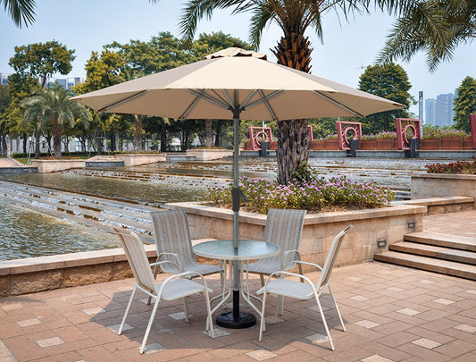 Aluminium frames are light and resist rust. Powder-coated steel offers strength with a durable finish. Quality ribs, locking pins and easy crank handles make opening and closing simple. Some cantilever models include 360 degree rotation for quick repositioning.