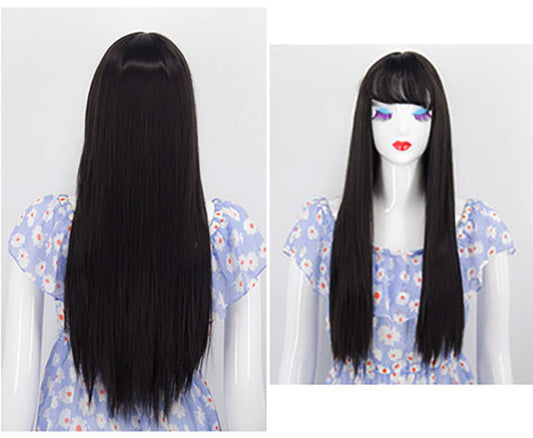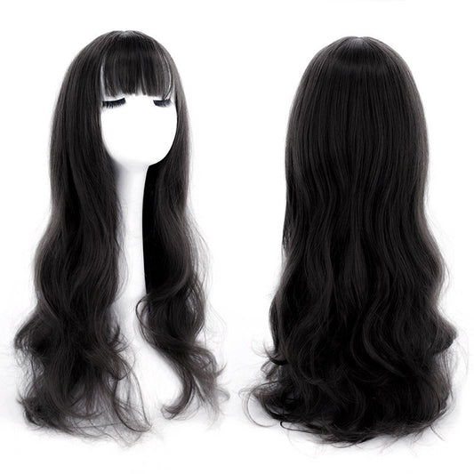 Dark Brown Long Curly Hair Wig Natural Wavy Brunette