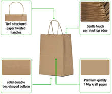 25 X Kraft Paper Bags Bulk Pack Gift Shopping Brown Retail Bag with Handles