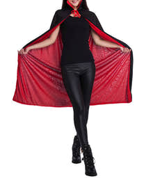 Black & Red Reversible Vampire Witch Cape for Halloween Party