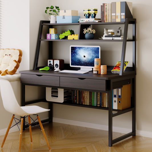 Cosmic 3-Tier Desk Hutch Storage Shelf Unit Office Organizer (Black Walnut)