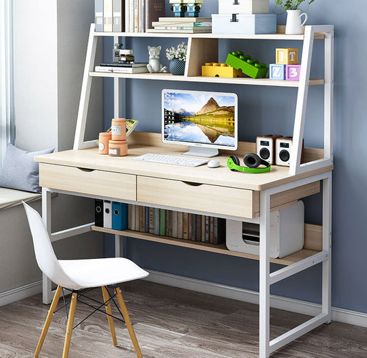 Enterprise Large Computer Desk Workstation with Shelves & Drawers (White Oak)