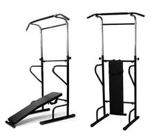 Multifunction Power Tower Dip Bar Pull Up Stand Fitness Station with Fid Bench