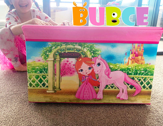 Large Toy Box Foldable Storage Stool (Pink Princess)