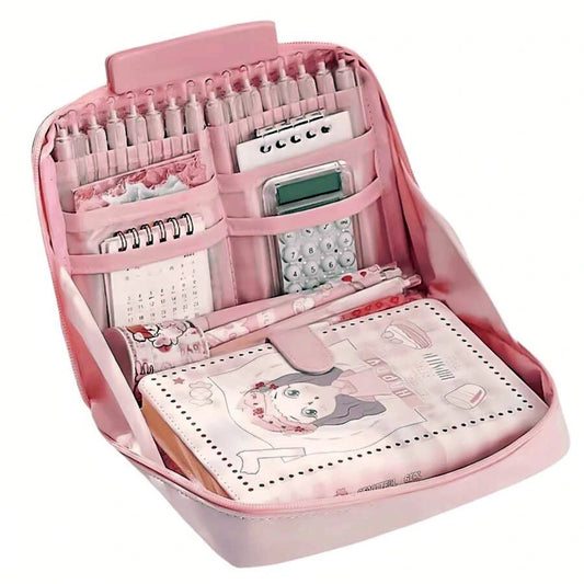 Large Capacity Multi-Layer Stationery Organiser Portable Pencil Case - Pink
