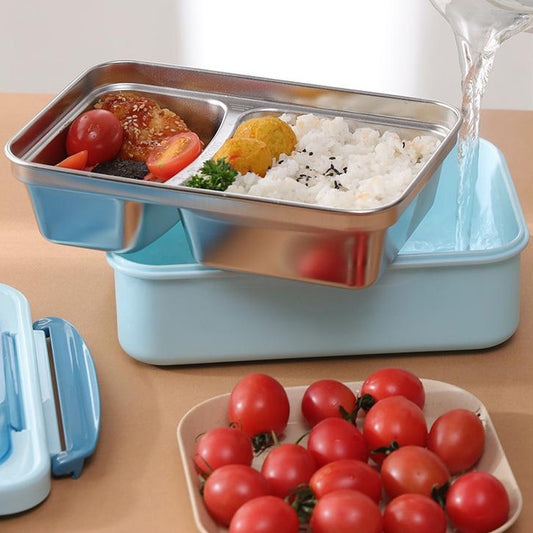 Stainless Steel Leakproof Lunch Bento Box with Compartments and Cutlery - Blue