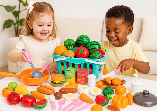 60-Piece Realistic Pretend Cutting Food Toy Play Set with Basket