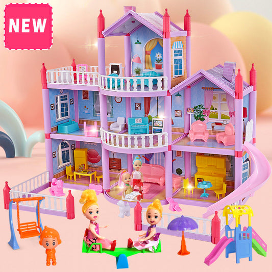 3-level Large Dreamhouse Mansion Doll House Princess Villa Toy Set with Dolls & Furnitur