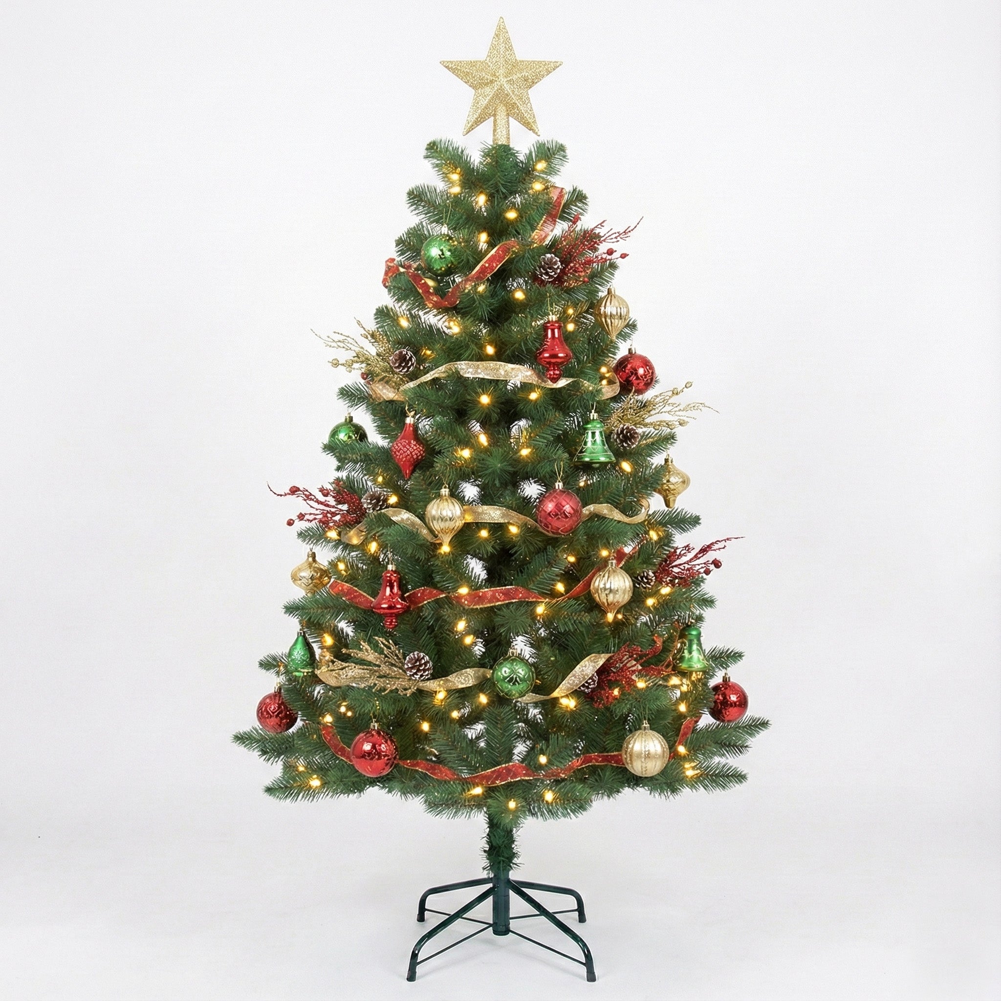 Let the festivities begin! Bring your holiday alive with this beautiful and iconic Christmas tree and spread the festive cheer. With 200 tips for a thriving, plush appearance and natural, symmetrical shape, the strong branches are attached to the center pole and can be fanned out wondrously for a full-shaped tree. This traditional green Christmas tree will become the central element of the festive season celebration, featuring a well-constructed sturdy metal frame and PVC natural-looking leaves. Looking ever so real, the tree features well-placed and generous tips with plenty of space to hang your favourite ornaments. With the beautiful, bushy branches, you can make your Christmas tree the focus of the room.