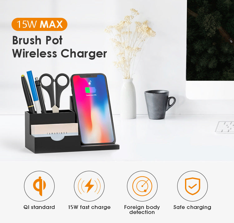 Not only does it neatly organize your desk accessories, but it also quickly and wirelessly charges your phone. The Qi-certified fast-charging wireless phone charging pad features a 15W output, making wireless charging a snap and revolutionizing high-speed wireless charging.