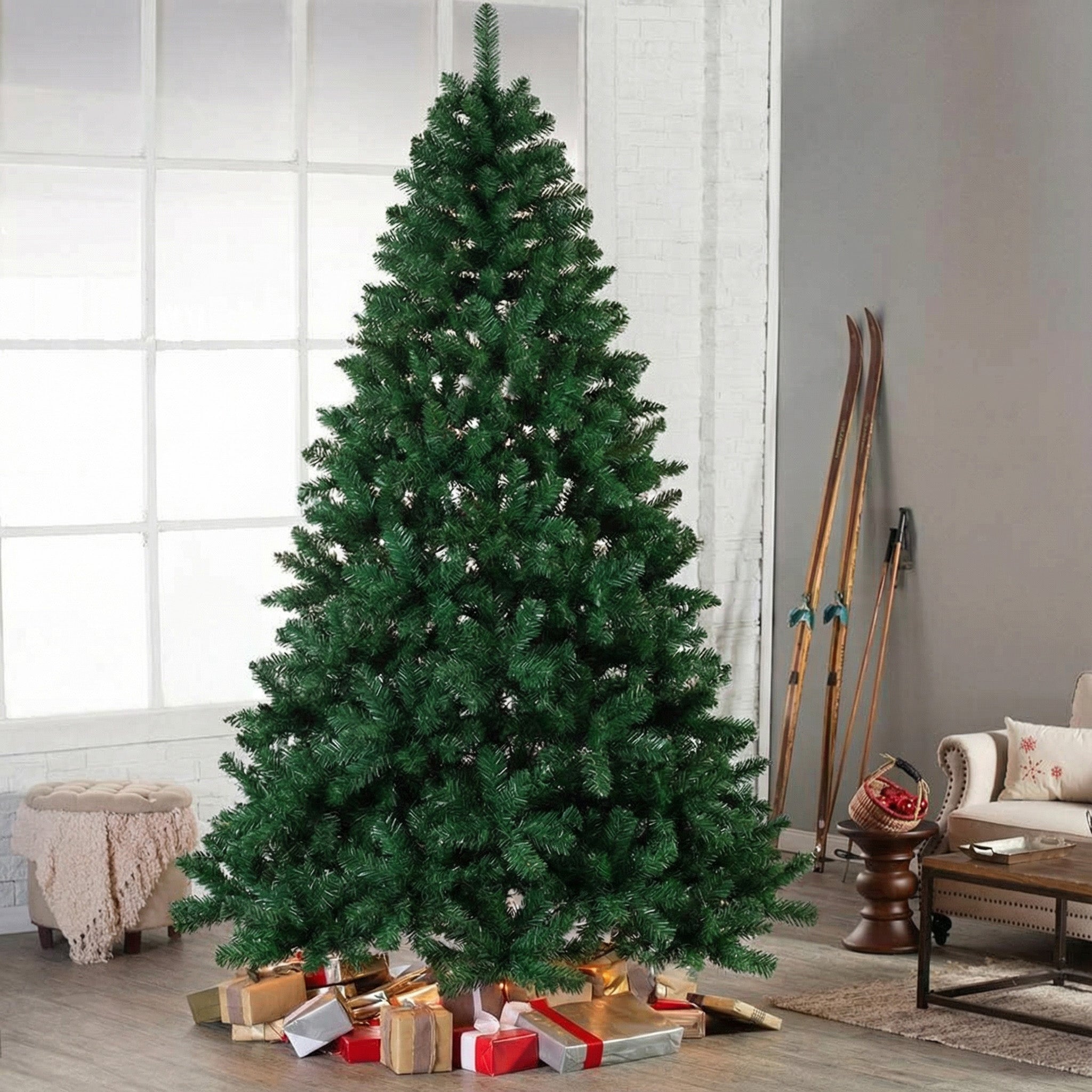 Let the festivities begin! Bring your holiday alive with this beautiful and iconic Christmas tree and spread the festive cheer. With an impressive 1000 tips for a thriving plush appearance and natural, symmetrical shape, the strong branches are attached to the center pole and can be fanned out wondrously for a full-shaped tree. This stunning traditional green Christmas tree will become the central element of the festive season celebration, featuring a well-constructed sturdy metal frame and PVC natural-looking leaves. Looking ever so real, the gorgeous tall and bushy tree features well-placed and generous tips with plenty of space to hang your favorite ornaments. With the beautiful, bushy branches, you can make your Christmas tree the focus of the room.