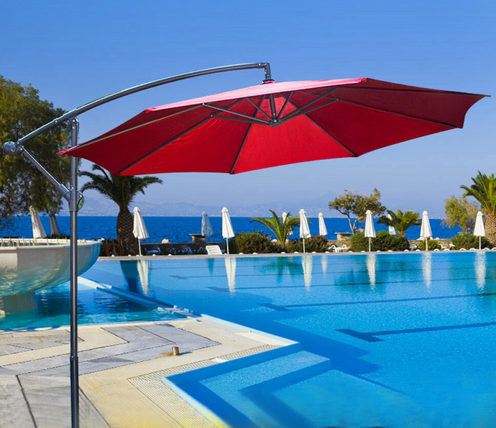 Relax in style with the Varossa 3m Steel Cantilever Outdoor Round Umbrella. Manufactured with a sturdy heavy-duty solid steel frame and large fabric canopy. Featuring a large canopy for maximum shade, it is the ideal outdoor accessory. Its astute cantilever system combined with a 360° rotating capability will enable you to control your shade to enjoy outdoor moments in a comfortable ambiance. A perfect way to make your outdoor space fit for living and entertaining, the base rotates, and the canopy winds out when needed. Its stylish and timeless design also makes it perfect to use all year round. For the best in entertaining for all seasons, this huge cantilever outdoor umbrella is an absolute must-have!