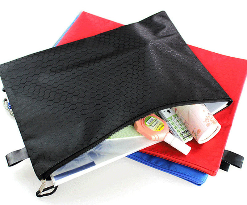 This A4 File Bag Student Waterproof Pencil Case is a zippered, waterproof pouch designed to organize and store a variety of items.