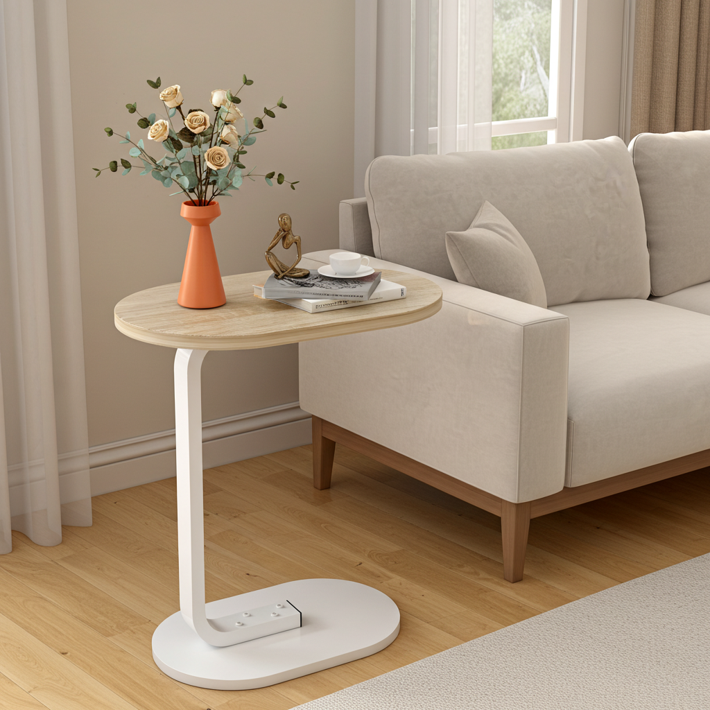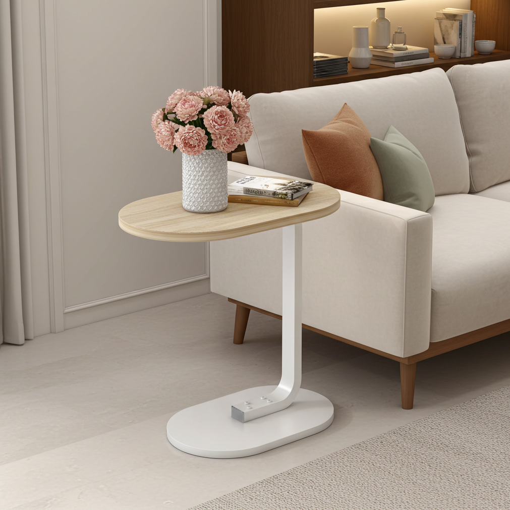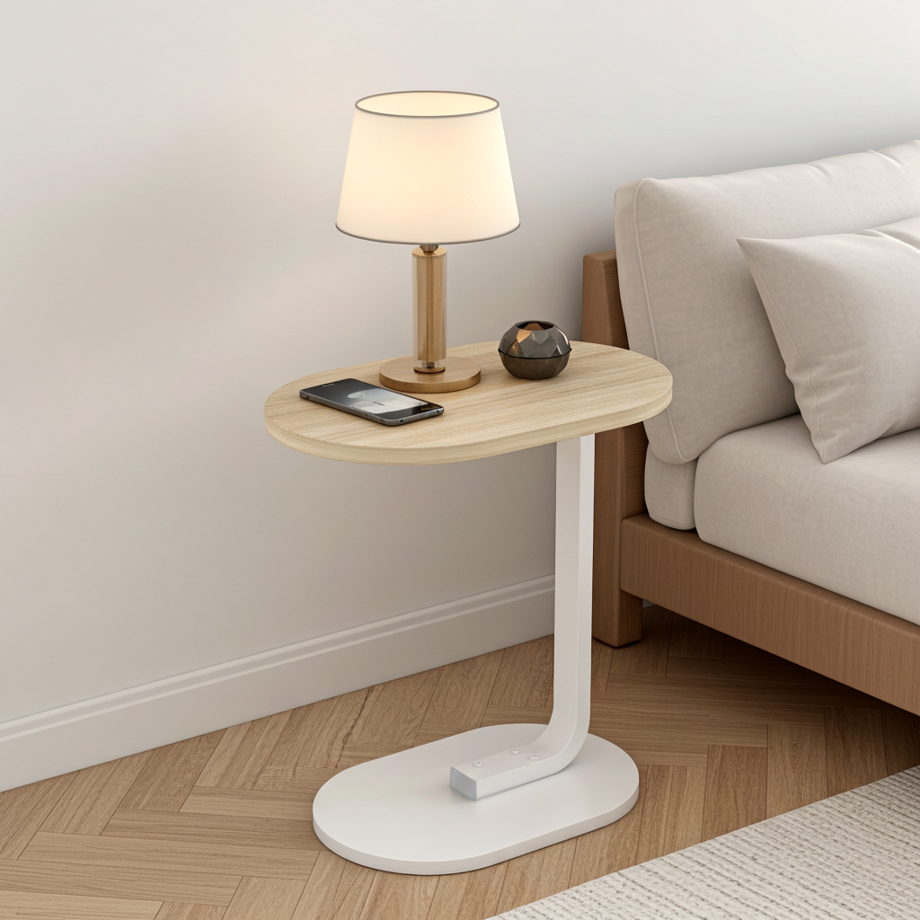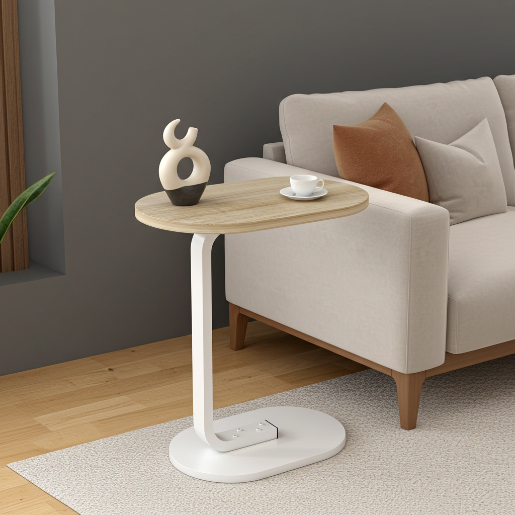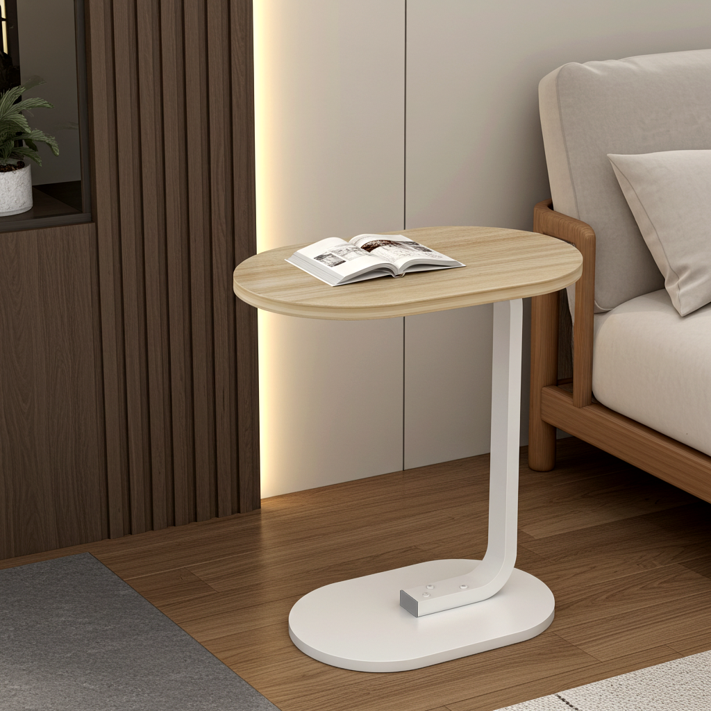 Enhance your living space with this elegant side table that seamlessly blends the warmth of natural wood with the strength of modern metal. Featuring a light oak tabletop and a sleek white metal base, this table introduces a soft, neutral tone that complements contemporary, minimalist, or Scandinavian interiors. The smooth, oval-shaped wooden surface offers just the right amount of space for your essentials—whether it's a cup of coffee, a book, or decorative accents. Designed with functionality in mind, the slide-under base fits effortlessly beneath most sofas or beds, making it a smart and stylish space-saver.