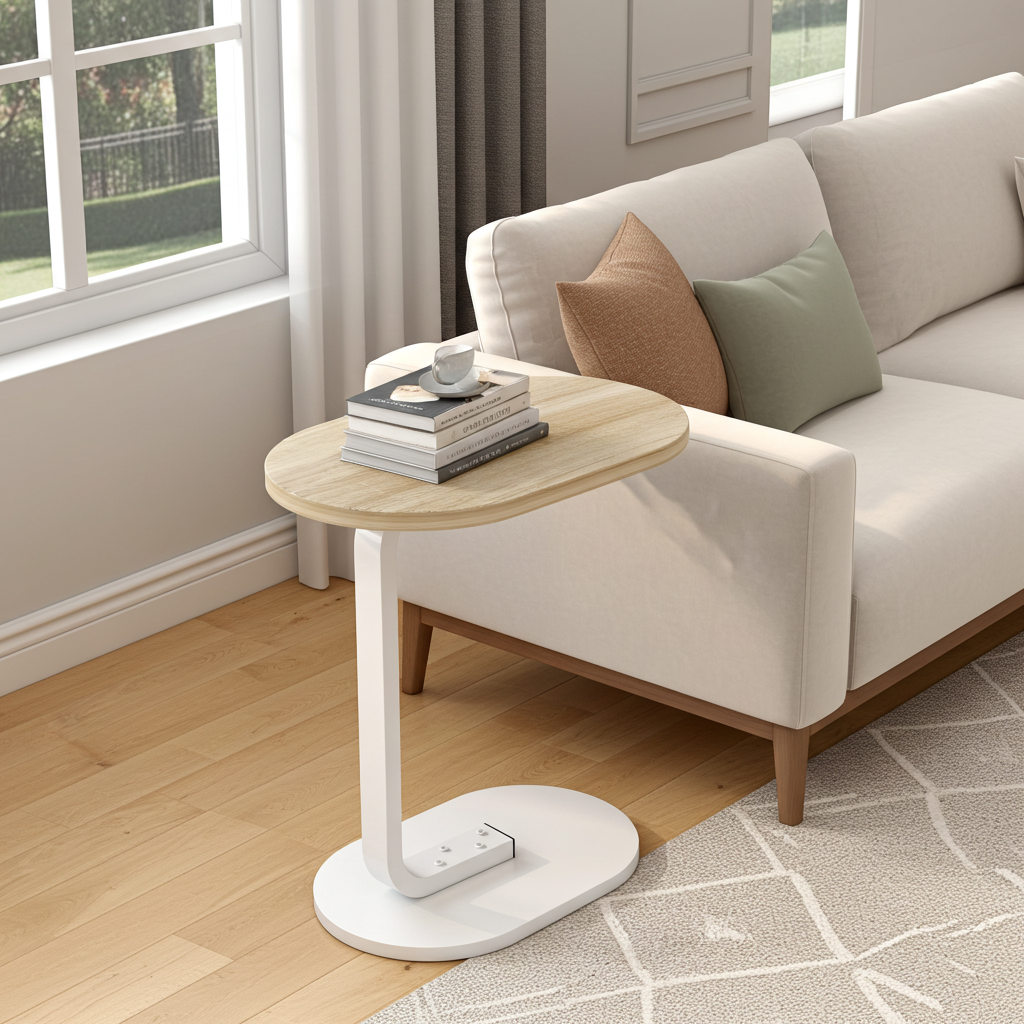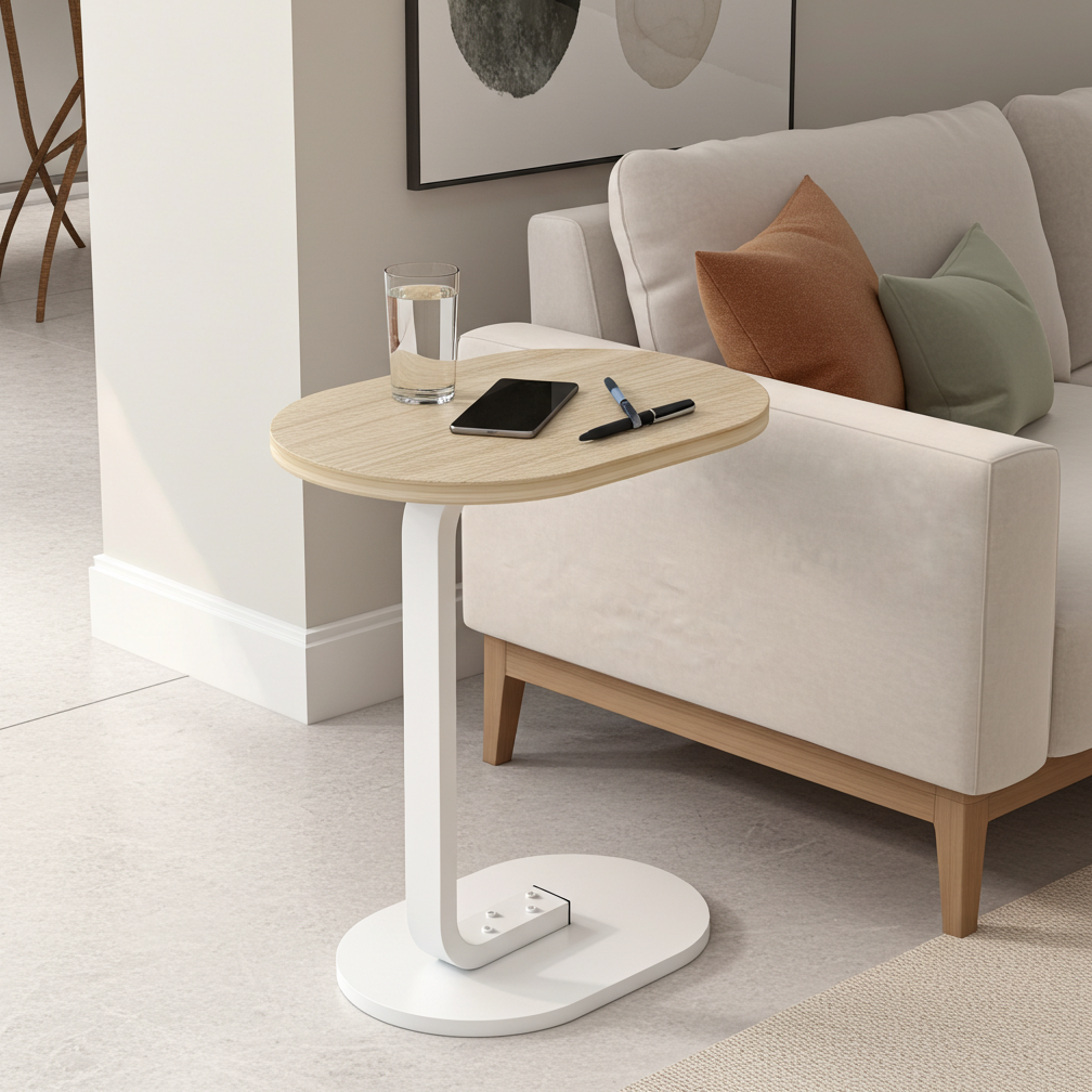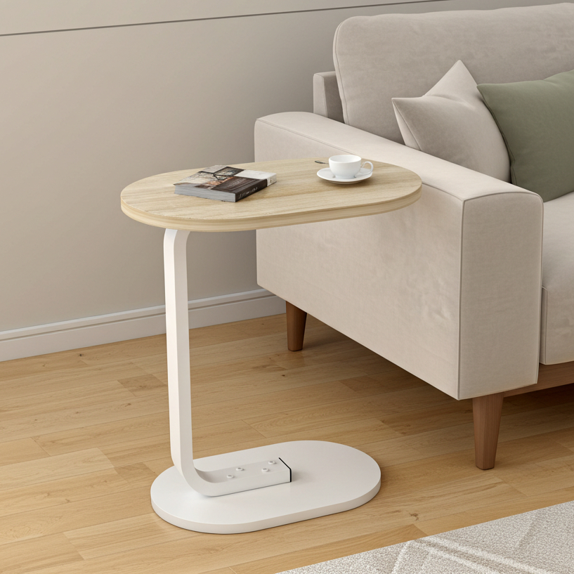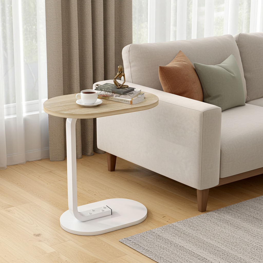 Enhance your living space with this elegant side table that seamlessly blends the warmth of natural wood with the strength of modern metal. Featuring a light oak tabletop and a sleek white metal base, this table introduces a soft, neutral tone that complements contemporary, minimalist, or Scandinavian interiors. The smooth, oval-shaped wooden surface offers just the right amount of space for your essentials—whether it's a cup of coffee, a book, or decorative accents. Designed with functionality in mind, the slide-under base fits effortlessly beneath most sofas or beds, making it a smart and stylish space-saver.