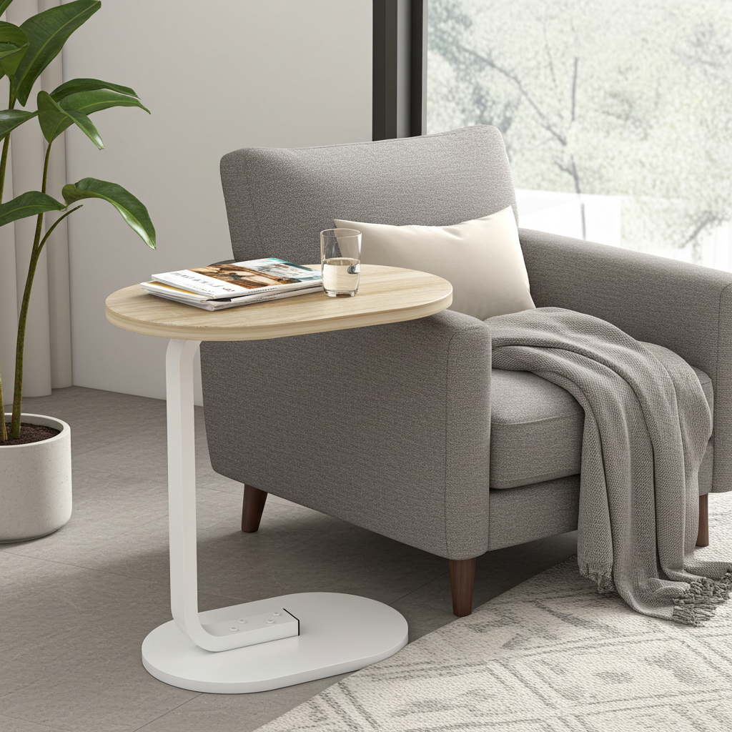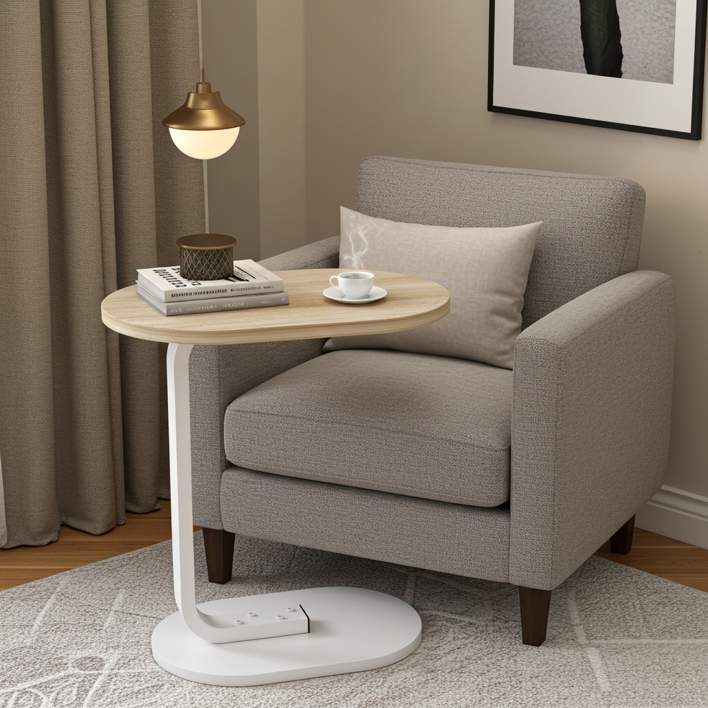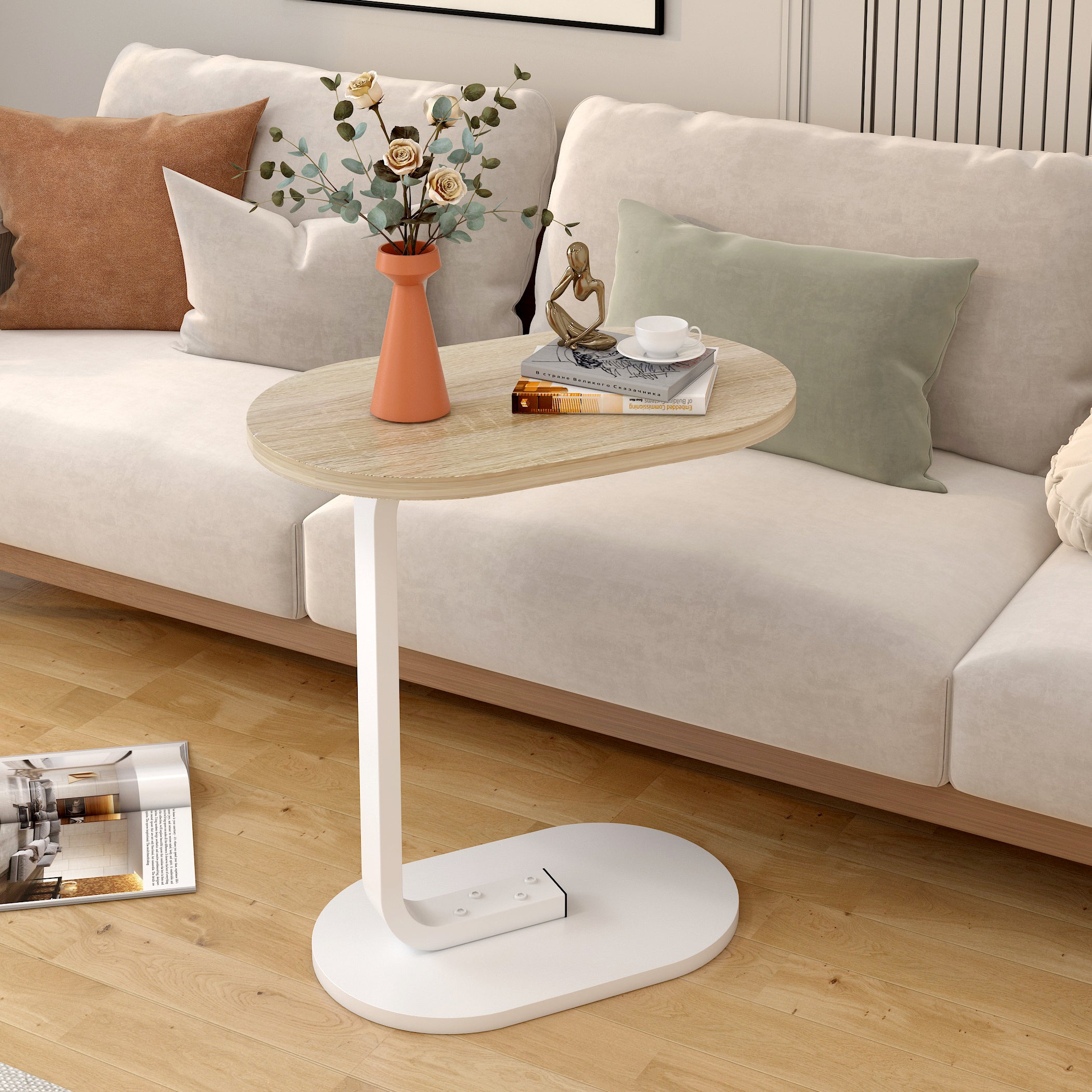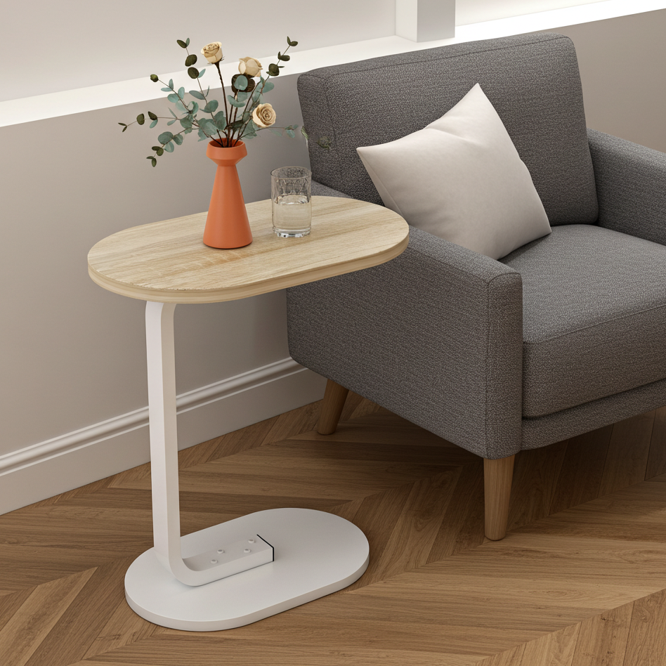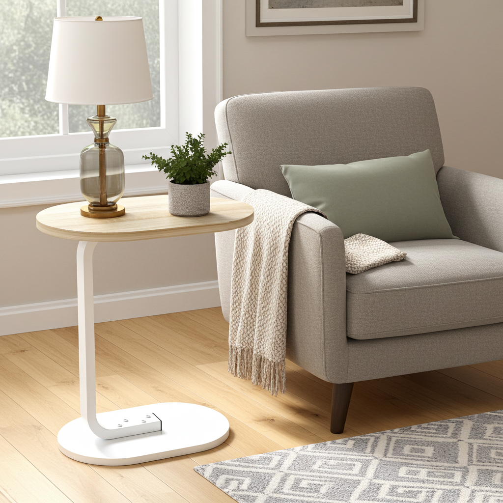 Enhance your living space with this elegant side table that seamlessly blends the warmth of natural wood with the strength of modern metal. Featuring a light oak tabletop and a sleek white metal base, this table introduces a soft, neutral tone that complements contemporary, minimalist, or Scandinavian interiors. The smooth, oval-shaped wooden surface offers just the right amount of space for your essentials—whether it's a cup of coffee, a book, or decorative accents. Designed with functionality in mind, the slide-under base fits effortlessly beneath most sofas or beds, making it a smart and stylish space-saver.