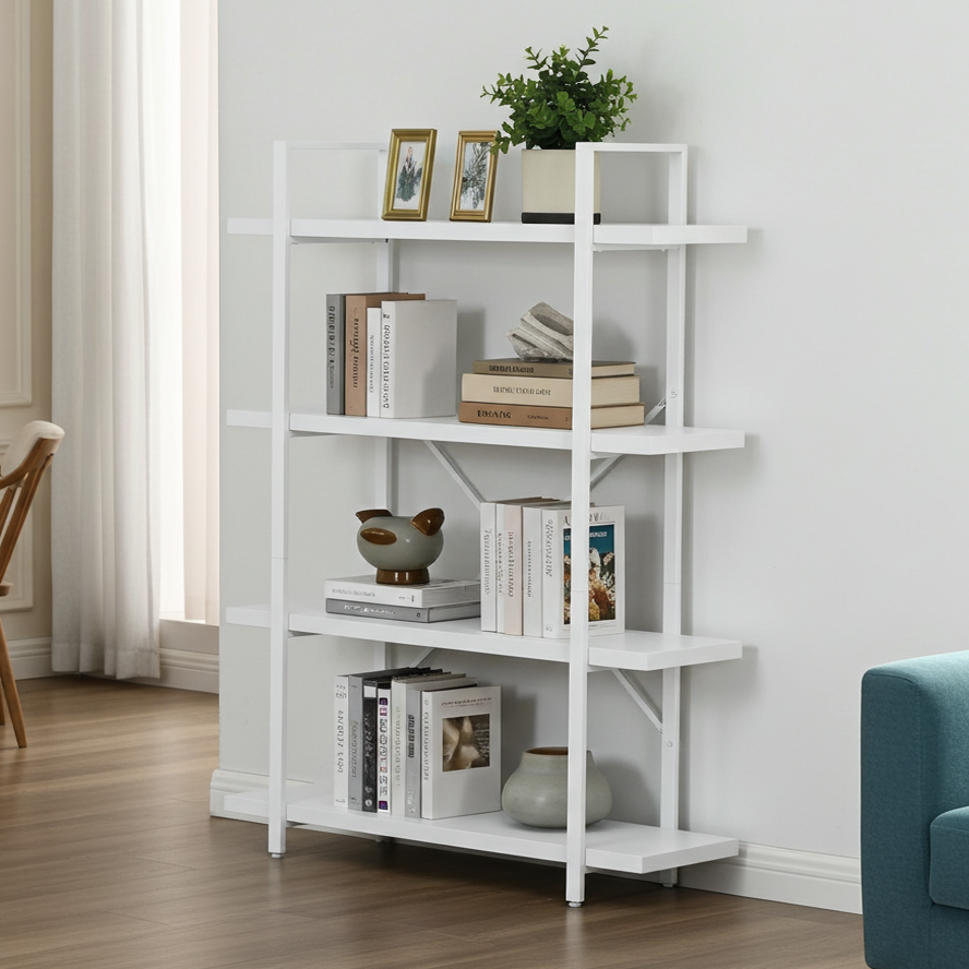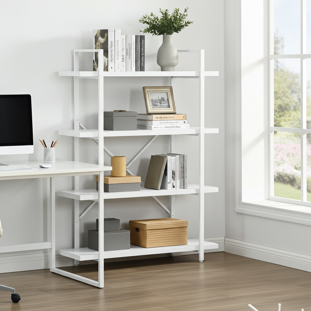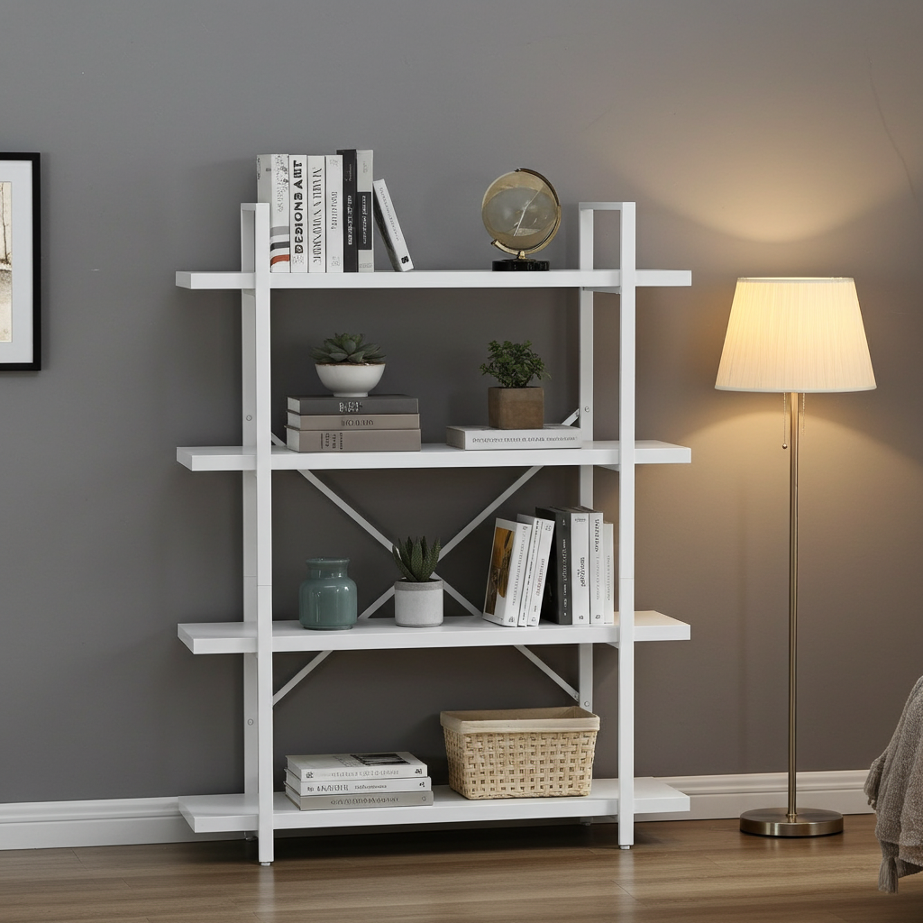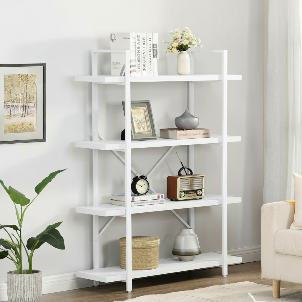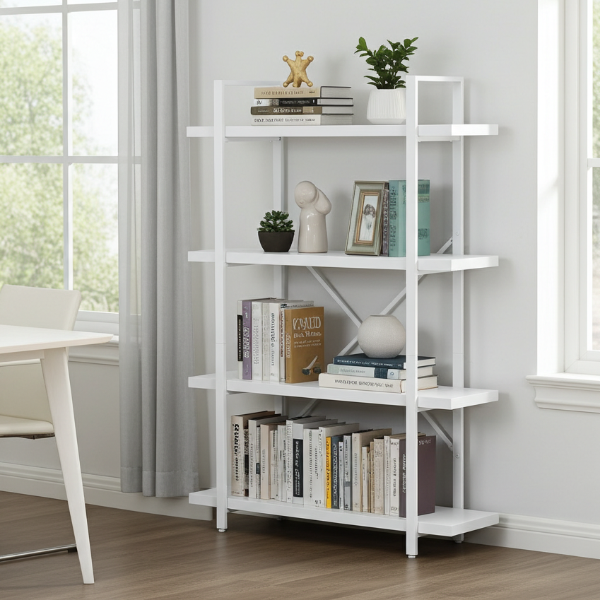Bring effortless style and organization to your home or office with the White Wood & Metal Four-Tier Shelving Unit. Thoughtfully designed to pair clean, contemporary lines with timeless simplicity, this versatile system turns cluttered corners into calm, curated displays.
