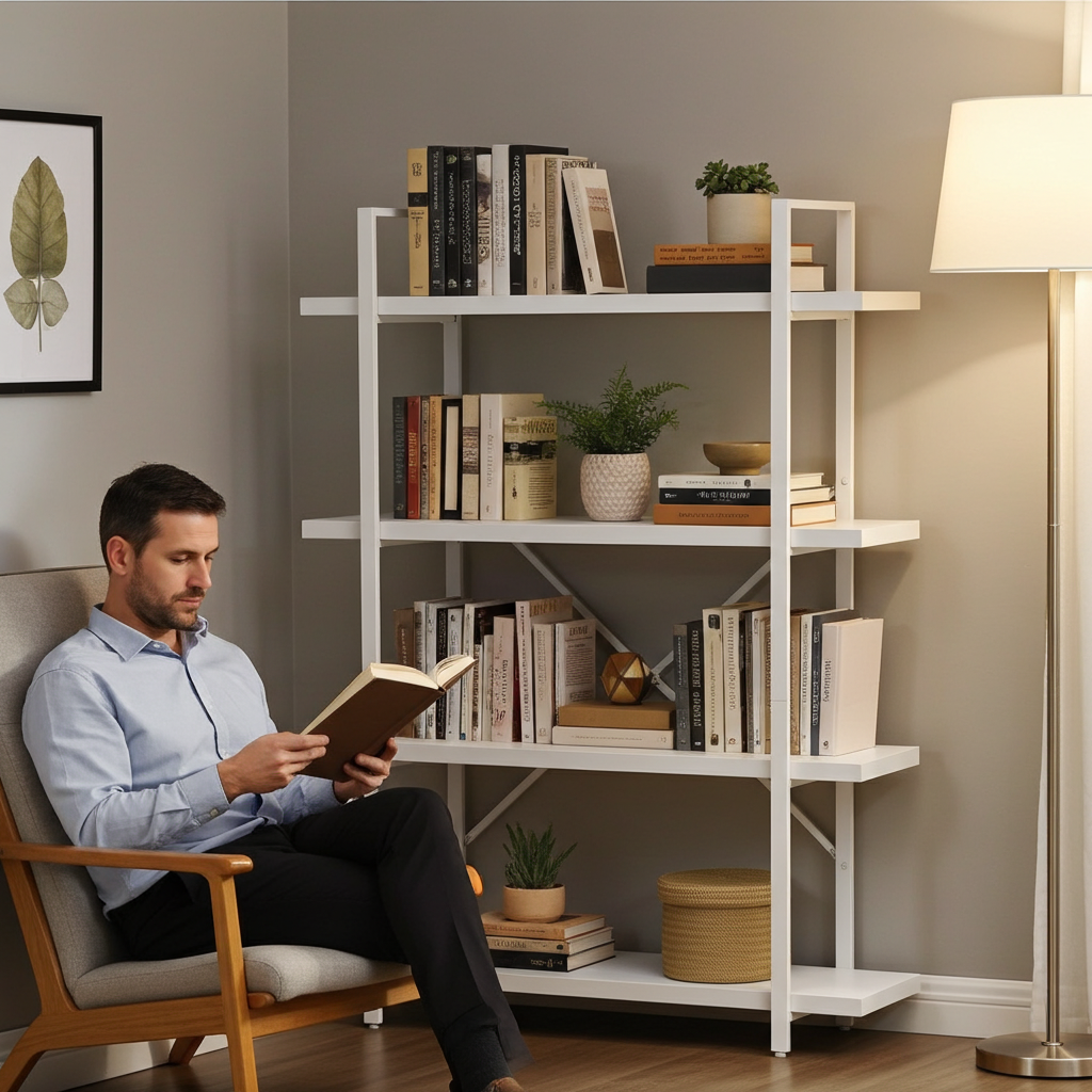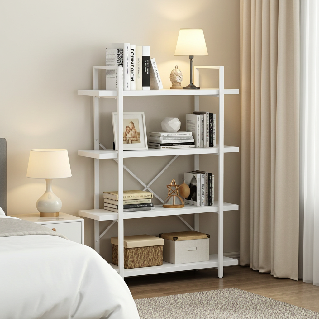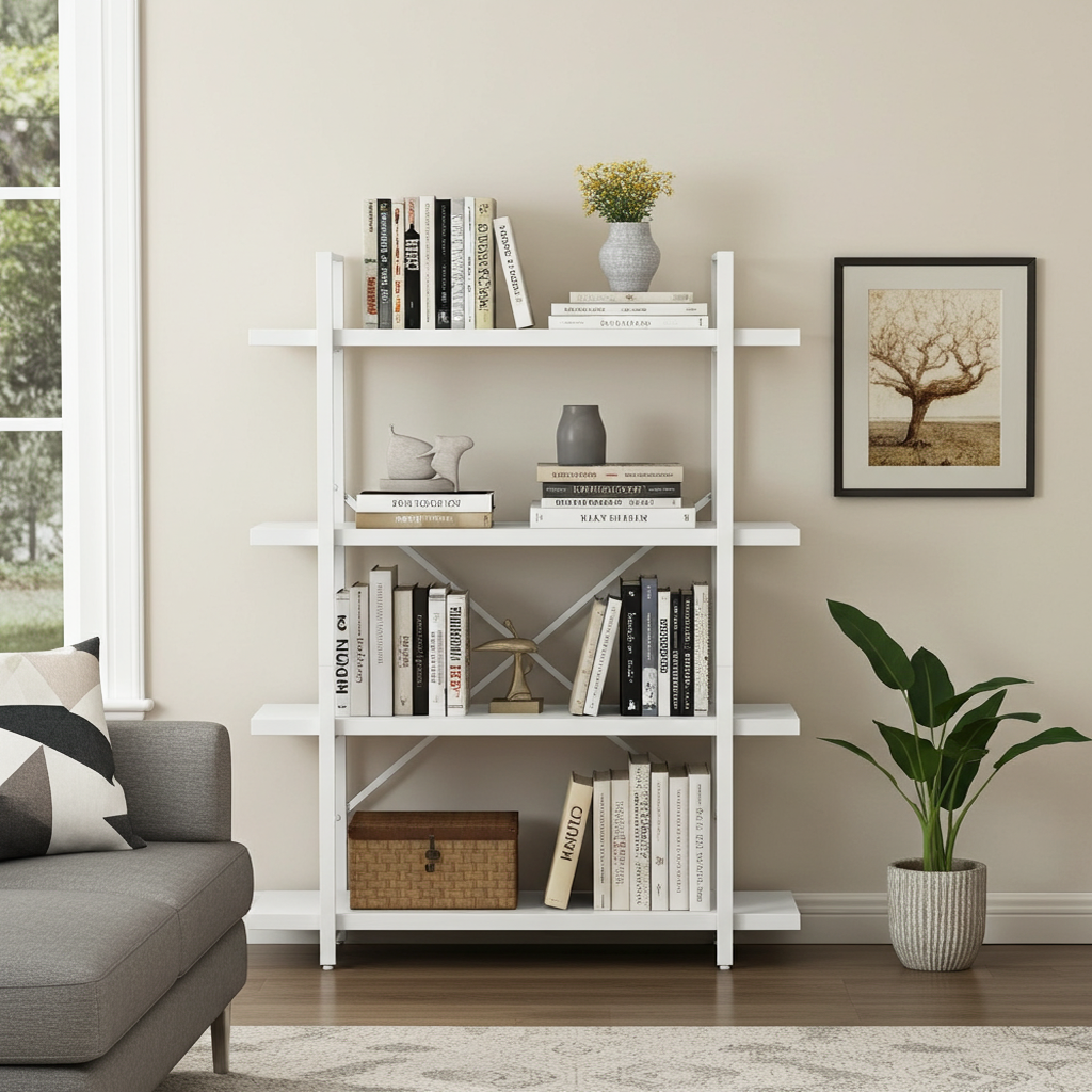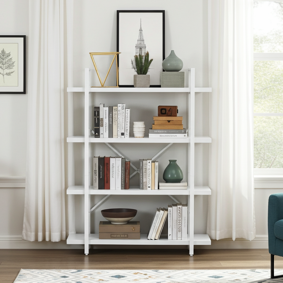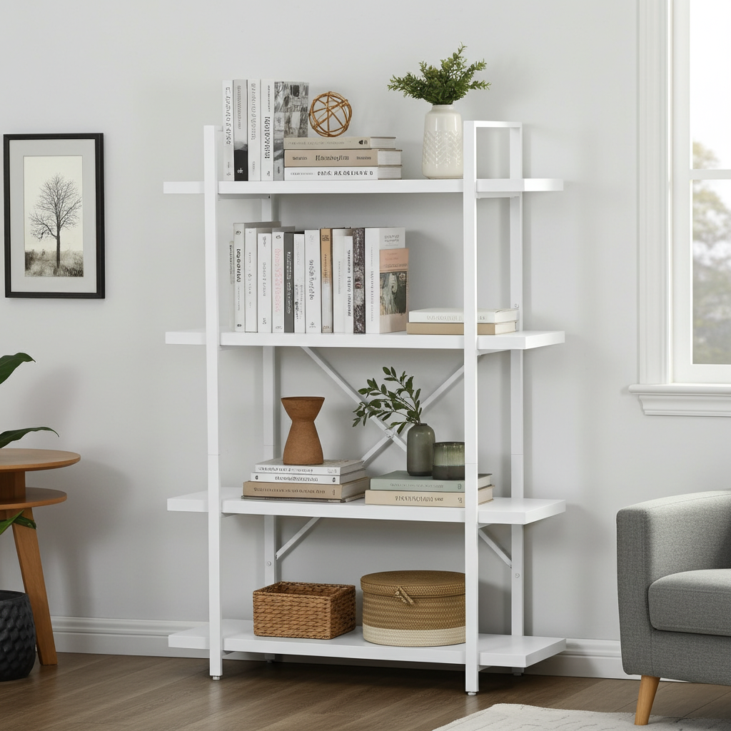 Bring effortless style and organization to your home or office with the White Wood & Metal Four-Tier Shelving Unit. Thoughtfully designed to pair clean, contemporary lines with timeless simplicity, this versatile system turns cluttered corners into calm, curated displays.