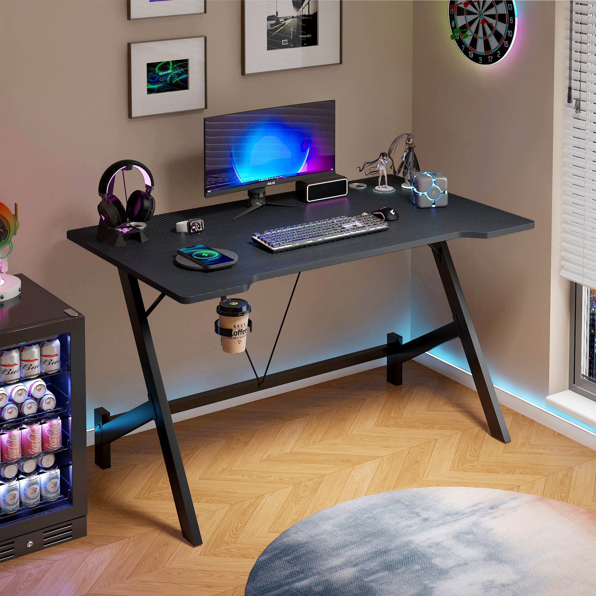 The sturdy steel frame and spacious, carbon-fibre-textured surface are built for long sessions. With a built-in cup holder and cable management, this modern, ultimate desk helps you stay comfortable, stay focused and get more done.
