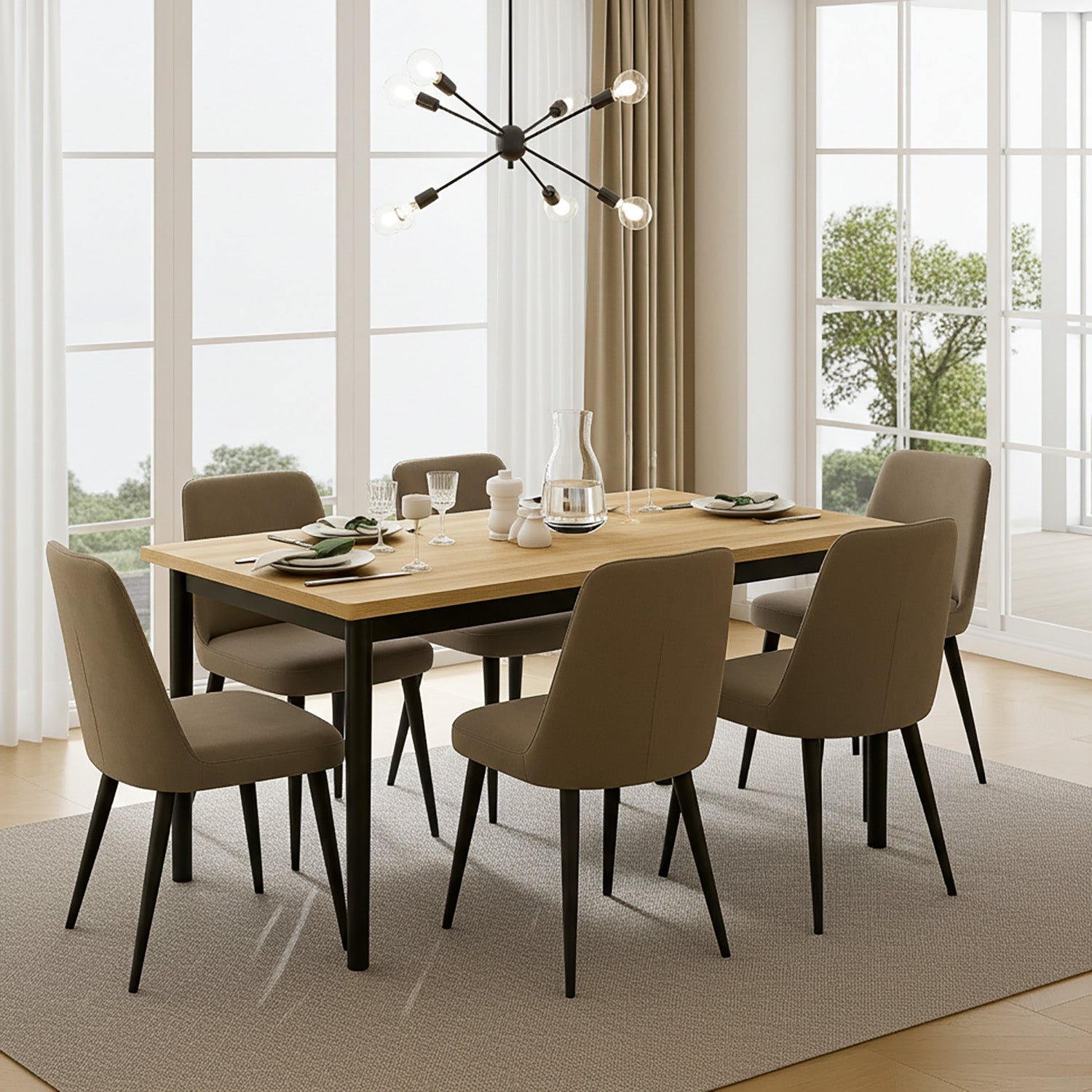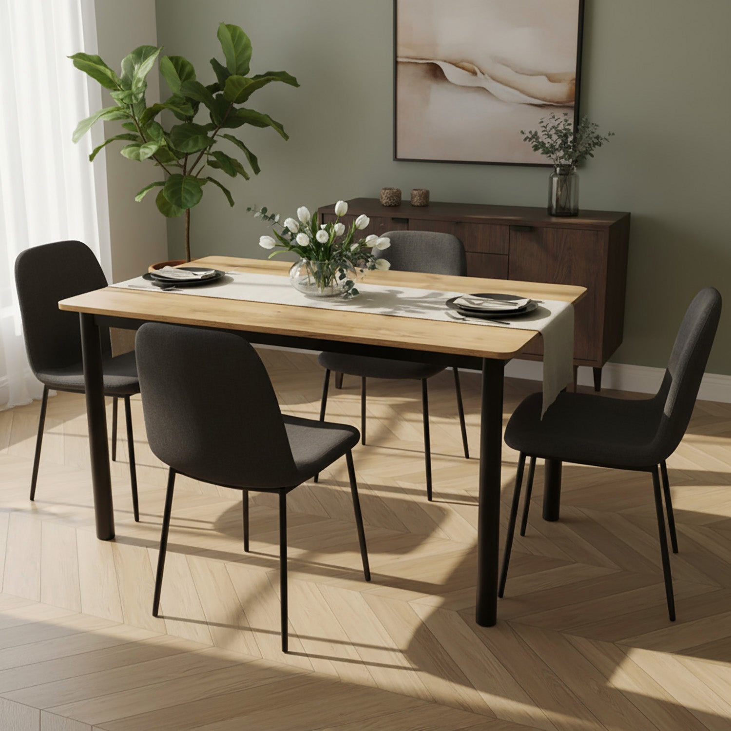 Elevate your home and turn everyday dining into extraordinary moments with our Rustic Oak Dining Table. Blending timeless charm with contemporary sophistication, this statement piece enriches any space the moment it arrives. Crafted with care, the beautifully textured Rustic Oak tabletop radiates warmth and authentic character, making every meal and gathering feel special. Sleek black, round metal legs add a modern edge, fusing industrial flair with everyday practicality.