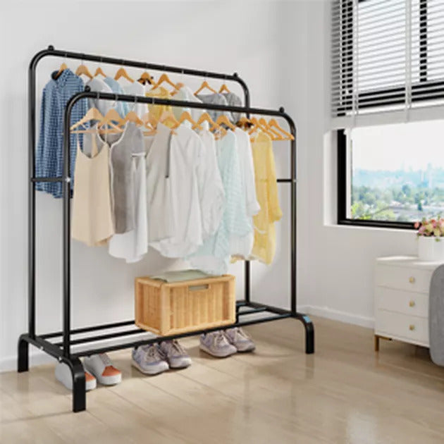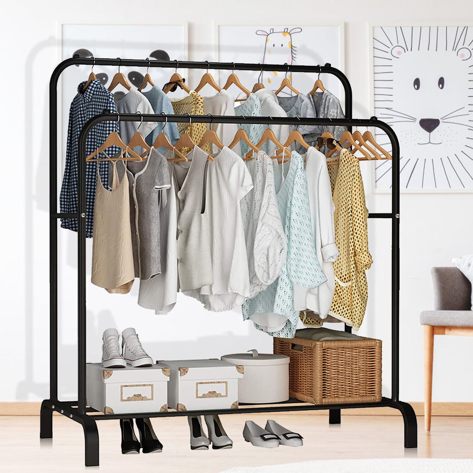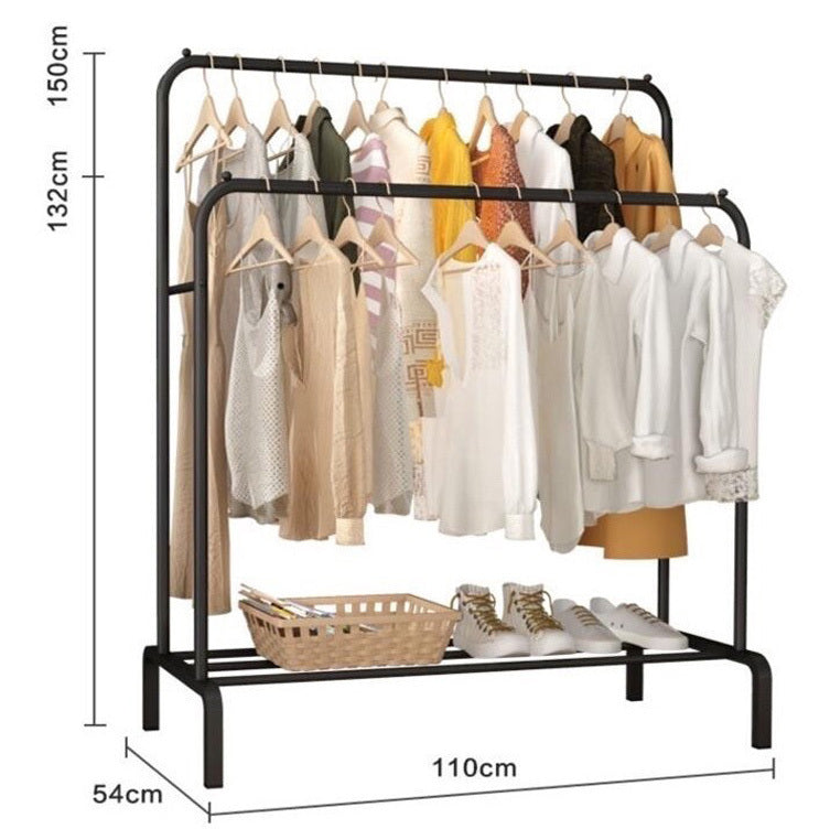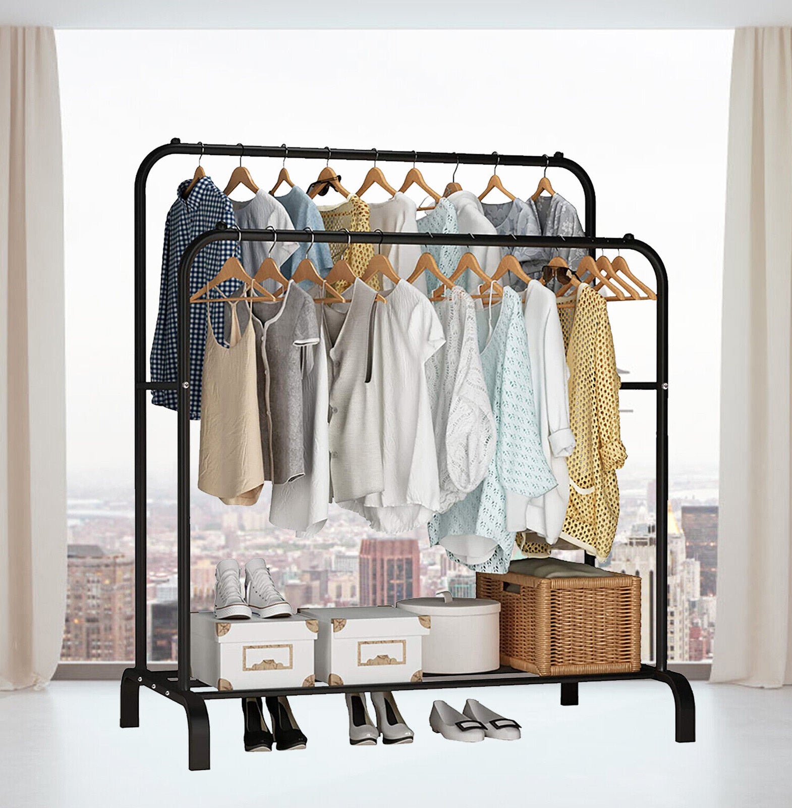 Large Double Coat Hanging Stand Wardrobe Clothes Hanger Rack (Black)