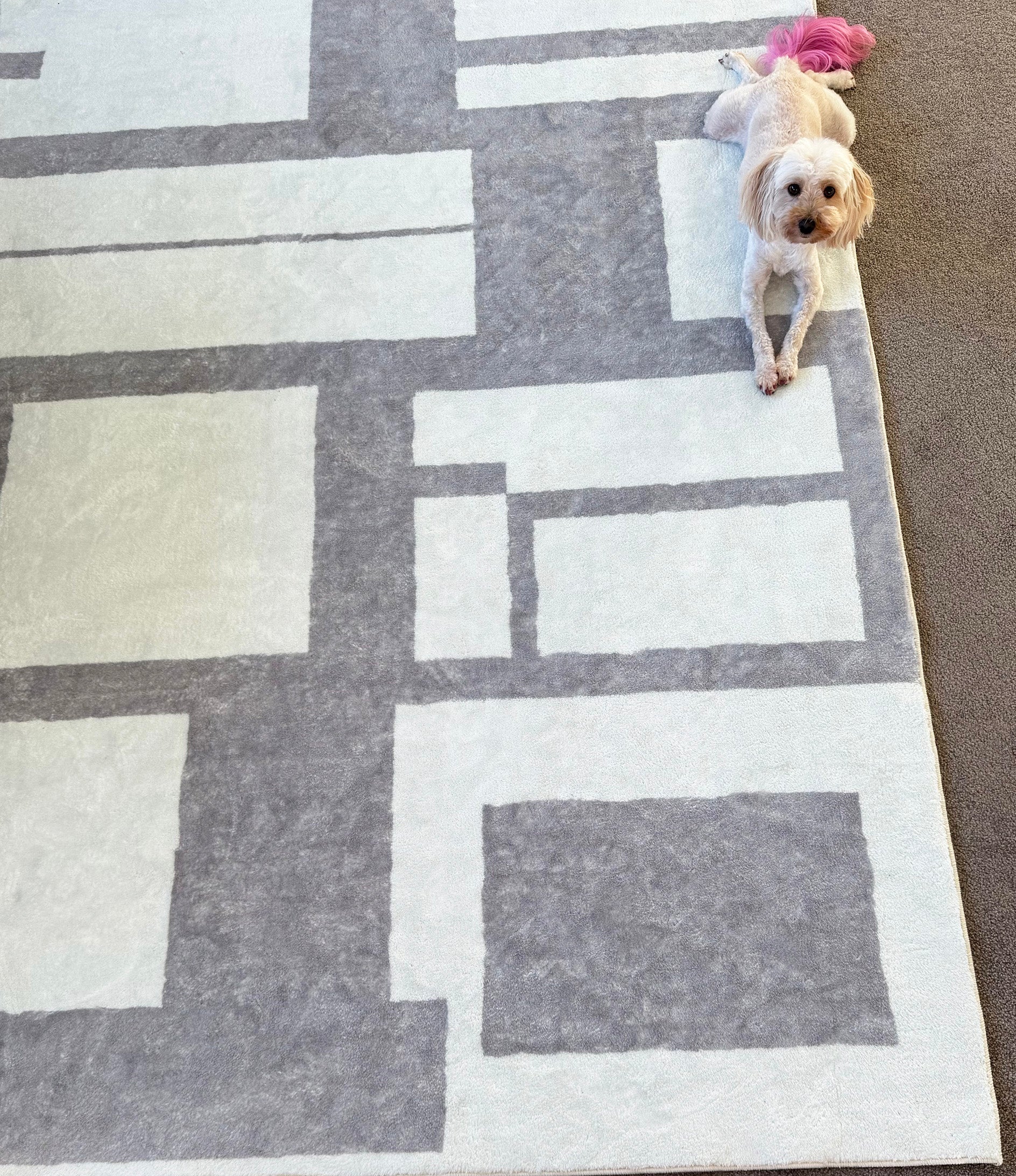 CLEARANCE SALE! Transform your home into a luxurious high-end retreat with our deluxe faux wool area rug. Soft to the touch, this stylish and luxurious rug is designed with an elegant and minimalistic pattern that creates a soothing visual effect, making it a stunning addition to any space. The unique abstract pattern complements any style and adds a touch of elegance to your home. Measuring approximately 10mm thick, the luxury piece looks divine in any space and offers a heavenly feeling underfoot. This deluxe faux wool area rug is incredibly soft and comfortable, making it the perfect addition to any room where you want to relax and unwind. The plush pile is soft and cozy underfoot, providing a luxurious feeling that makes you feel like you're walking on clouds.
