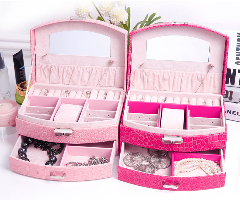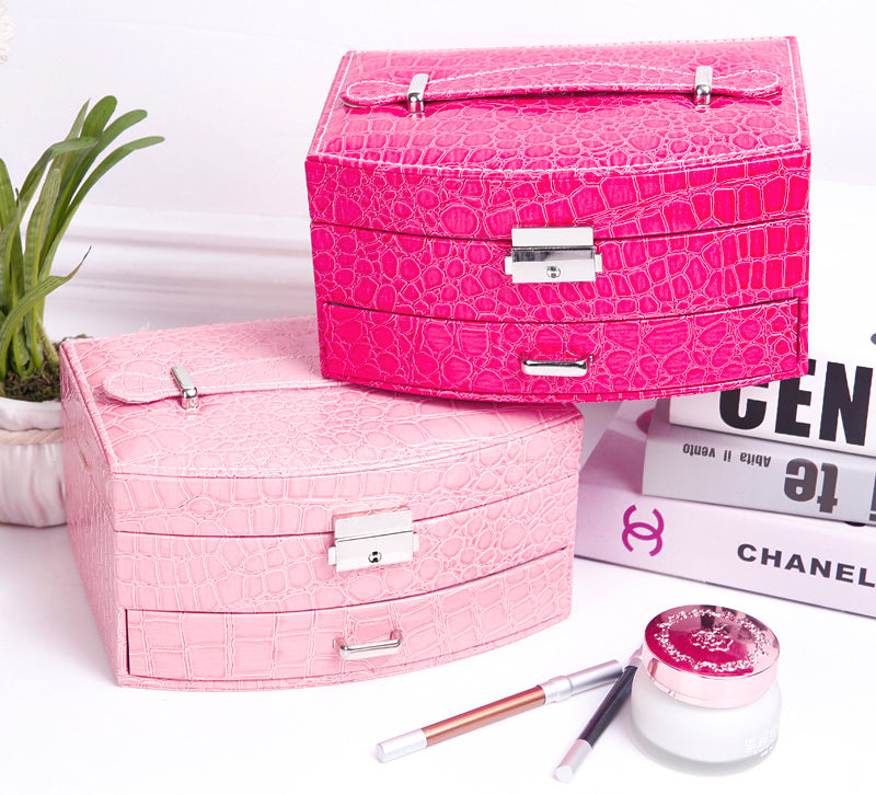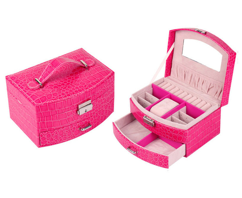 Indulge in the epitome of elegance with this premium jewellery box, where sophistication meets functionality. Crafted with an eye for luxury, the faux crocodile leather exterior offers a tactile experience that's as exquisite as it is durable. Every detail has been thoughtfully considered, from the plush, velvety interior to the gleaming stainless steel lock that secures your treasures.