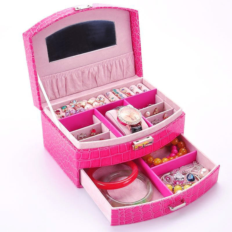 Luxury PU Leather Jewellery Box Storage Case (Hot Pink)