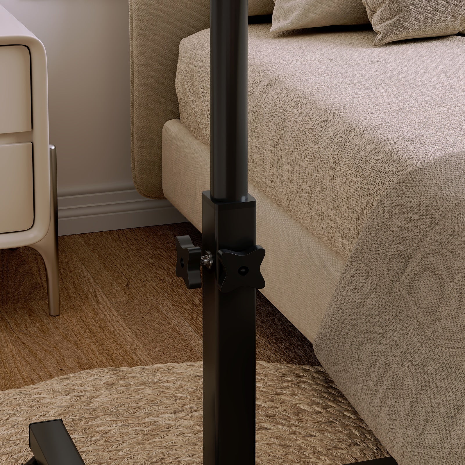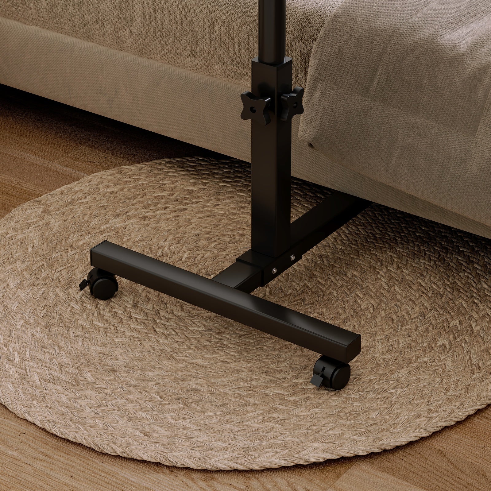 Discover the rustic charm of the 2-in-1 adjustable side table. Designed to effortlessly slide under furniture, it merges sleek adjustability with a cozy aesthetic. Ideal for readers, writers, and home professionals, its top tilts up to 90°, anchored by two locking casters, blending style and practicality.