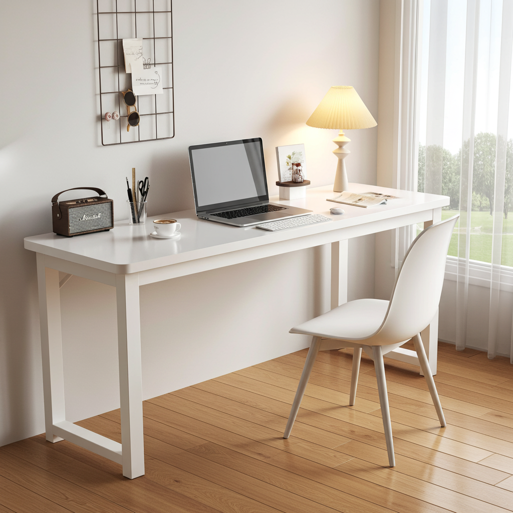 Complete your office, living room, or entryway arrangement with this minimalist console table, coated in a serene white finish. The fusion of the wood's warmth with the metal's strength creates a versatile and stylish console table or computer desk that is a must-have for any contemporary home!
