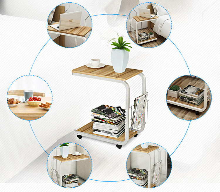 Clean lines and endless style, the Sofa Bed Side Table Laptop Computer Desk with Magazine Holder features a sleek and modern design. A striking combination of steel and wood offers sophistication and warmth, stylish and modern yet simple. Featuring a handy magazine rack for organization of magazines and documents, and 4 wheels allow for easy portability.