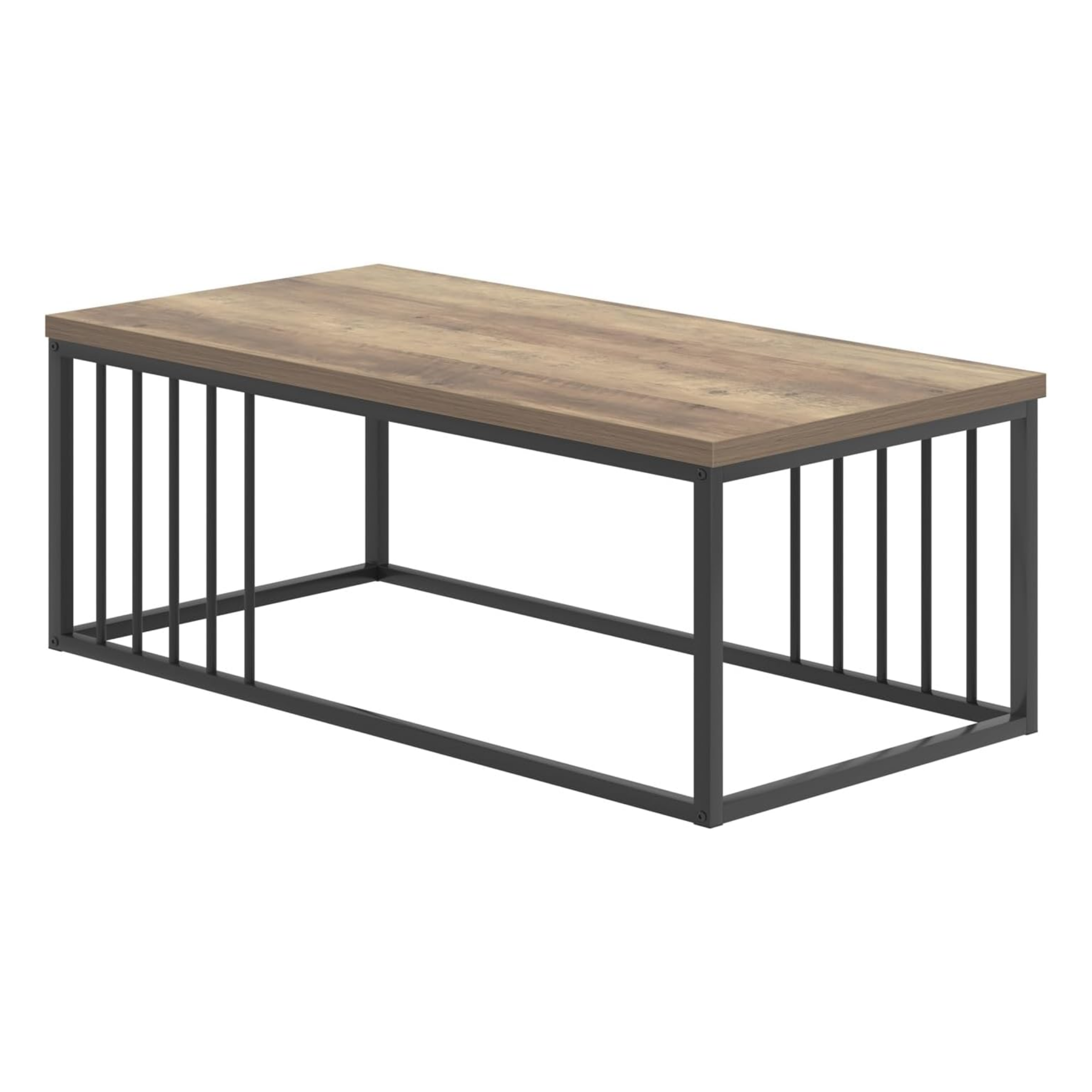 Transform your lounge into a stylish, inviting space with this ultra-sleek Urban Industrial Coffee Table. With its stunning rustic oak MDF tabletop and slim black steel legs, it brings a warm yet edgy look that instantly lifts any modern Australian living room.