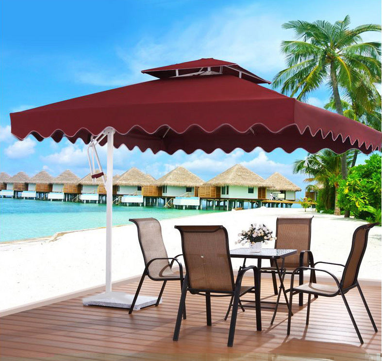 Indulge in ultimate outdoor relaxation with the Varossa Huge Square Hawaii Umbrella. Precision-crafted, this umbrella features a robust steel frame and a large fabric canopy reinforced with heavy-duty steel. It offers year-round protection and comfort, whether against the scorching summer sun or unexpected drizzles.