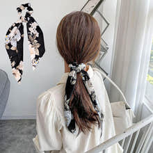 Silky Satin Floral Hair Scarf Scrunchies Ponytail Bow Hairband Headwear